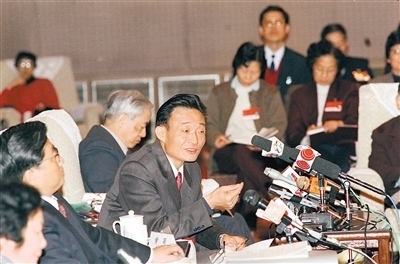 1994年3月,時任上海市委書記的吳邦國同志在全國兩會上海代表團(tuán)全團(tuán)會議上。新華社記者 劉建國攝