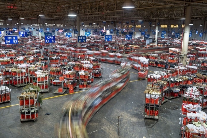 2023年1月31日,臺(tái)車(chē)在昆明國(guó)際花卉拍賣(mài)交易中心運(yùn)輸鮮花。新華社記者 陳欣波 攝