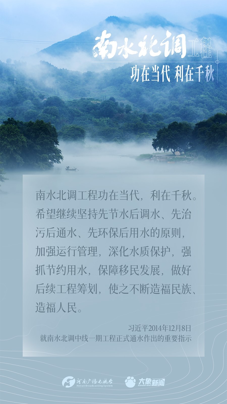 今年是南水北調(diào)東、中線一期工程通水10周年。南水北調(diào)工程事關(guān)戰(zhàn)略全局、事關(guān)長遠(yuǎn)發(fā)展、事關(guān)人民福祉,一直是習(xí)近平總書記的牽掛。黨的十八大以來,總書記多次實(shí)地考察項(xiàng)目進(jìn)展、運(yùn)行,作出重要講話重要指示批示,為南水北調(diào)工程持續(xù)高質(zhì)量發(fā)展指明方向。