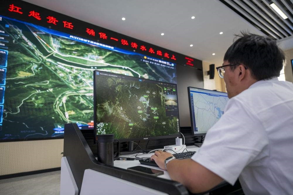 同時(shí),為了“不讓一滴污水進(jìn)入河庫”,“空、天、地、水”守水防線全方位在丹江口庫區(qū)筑牢。通過高空衛(wèi)星、無人機(jī)、環(huán)庫岸線攝像頭、地下雨污管網(wǎng)內(nèi)的監(jiān)測儀等設(shè)備,工作人員能實(shí)時(shí)監(jiān)測庫岸線安全、非法垂釣、危化品運(yùn)輸?shù)惹闆r,重點(diǎn)排污企業(yè)、污水處理廠情況也一目了然。