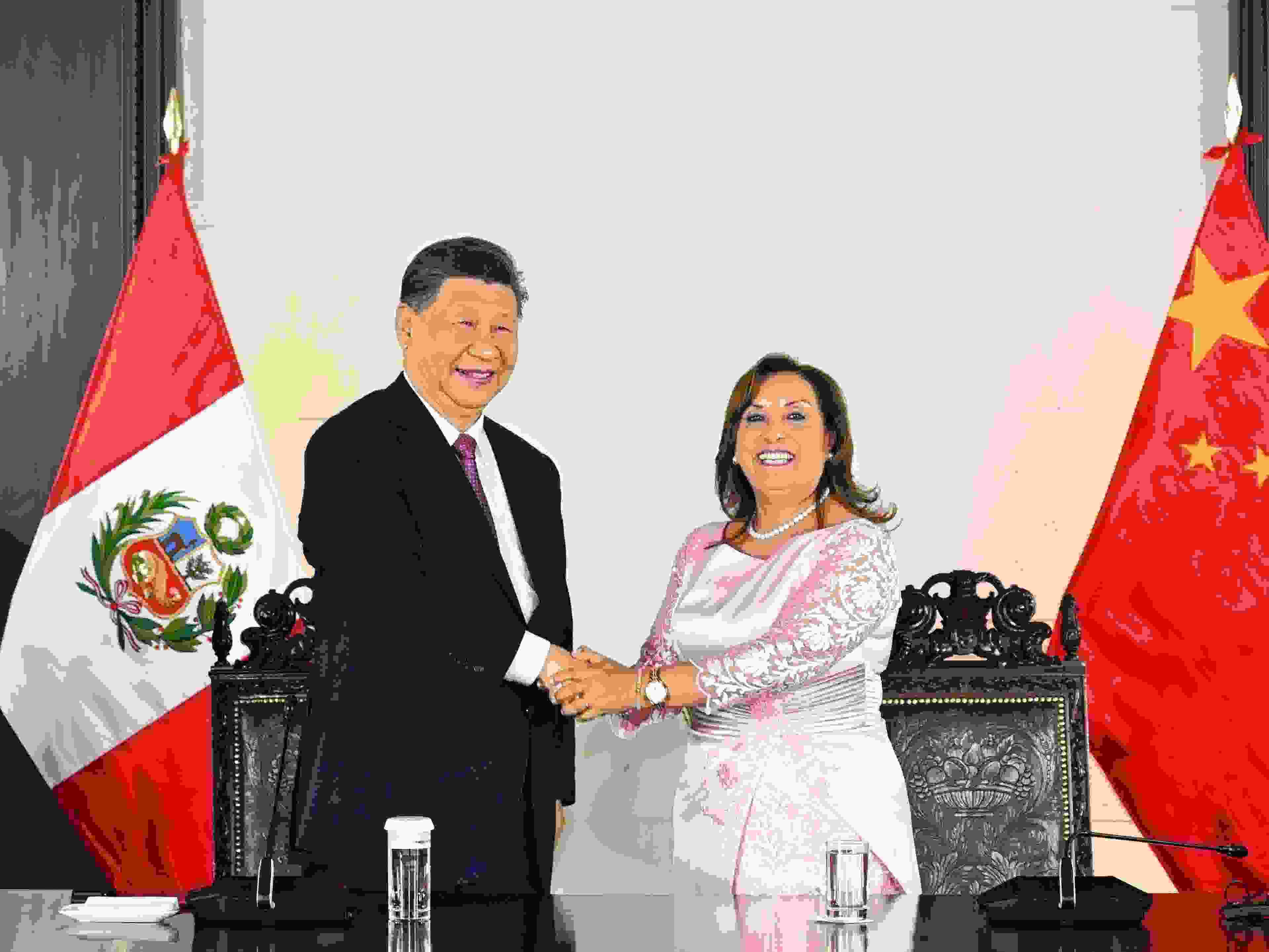 當(dāng)?shù)貢r(shí)間2024年11月14日晚,國家主席習(xí)近平同秘魯總統(tǒng)博魯阿爾特在利馬總統(tǒng)府以視頻方式共同出席錢凱港開港儀式。新華社記者 謝環(huán)馳 攝