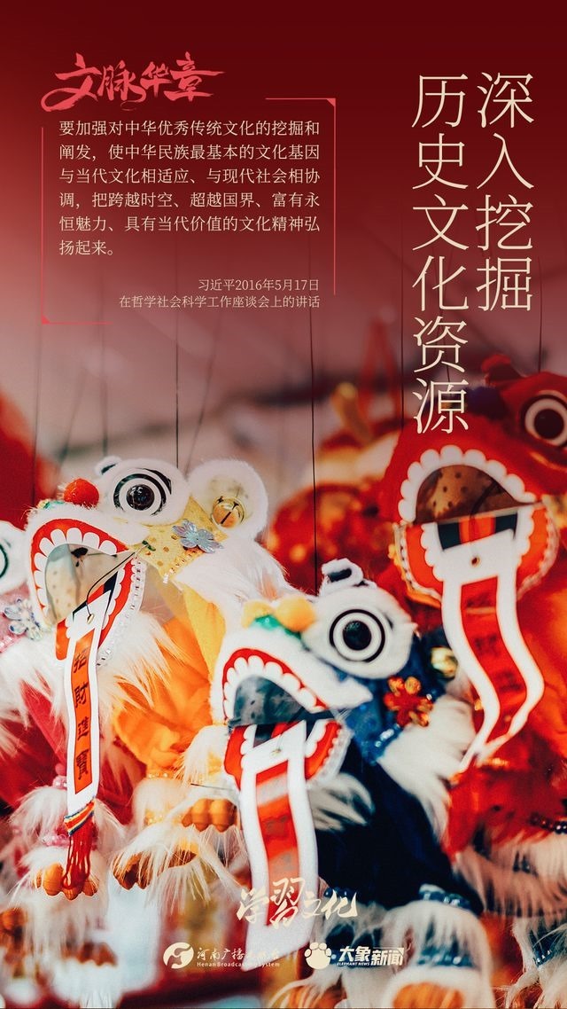 “春節(jié)——中國人慶祝傳統(tǒng)新年的社會實踐”被列入聯(lián)合國教科文組織人類非物質(zhì)文化遺產(chǎn)代表作名錄,彰顯了中華優(yōu)秀傳統(tǒng)文化的深厚底蘊,也是我國歷史文化資源保護(hù)的又一成果。習(xí)近平總書記十分重視歷史文化資源的挖掘、利用,多次發(fā)表重要講話,滿載對傳承和發(fā)展中華優(yōu)秀傳統(tǒng)文化的期許。我們一起學(xué)習(xí)。