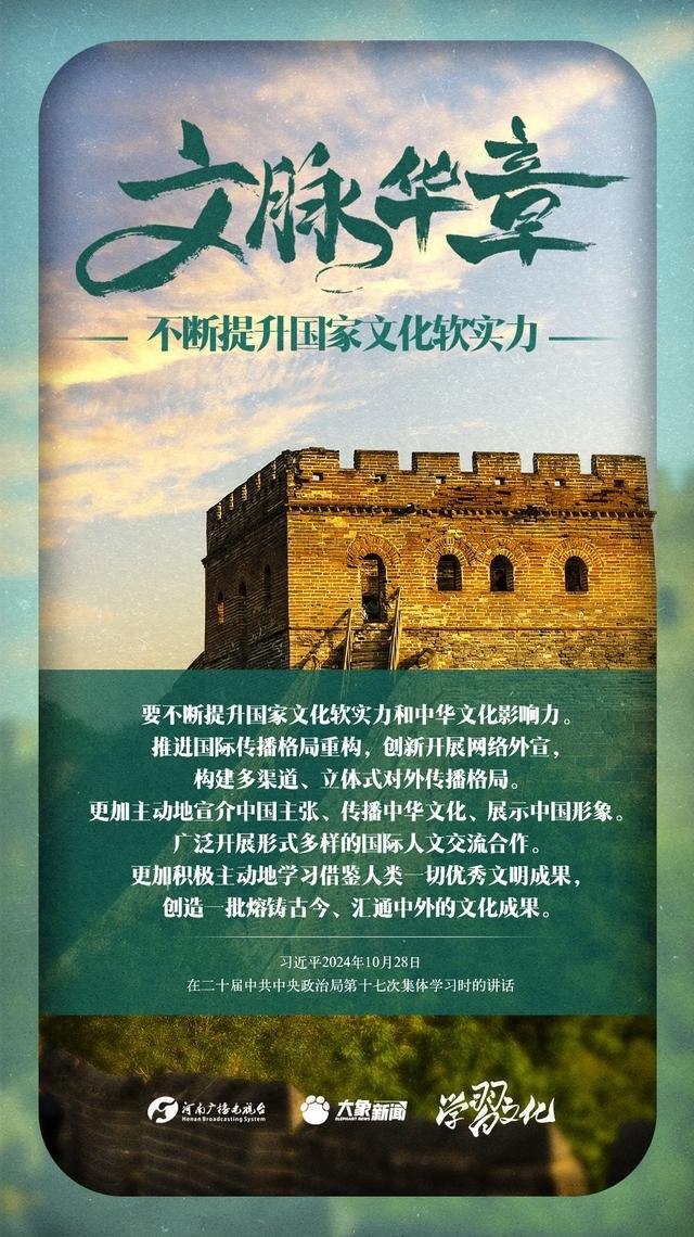 文化軟實力集中體現(xiàn)了一個國家基于文化而具有的凝聚力和生命力,以及由此產(chǎn)生的吸引力和影響力。黨的十八大以來,習近平總書記站在黨和國家事業(yè)發(fā)展全局的戰(zhàn)略高度,就提高國家文化軟實力闡發(fā)了一系列重要論述。我們一起學習。