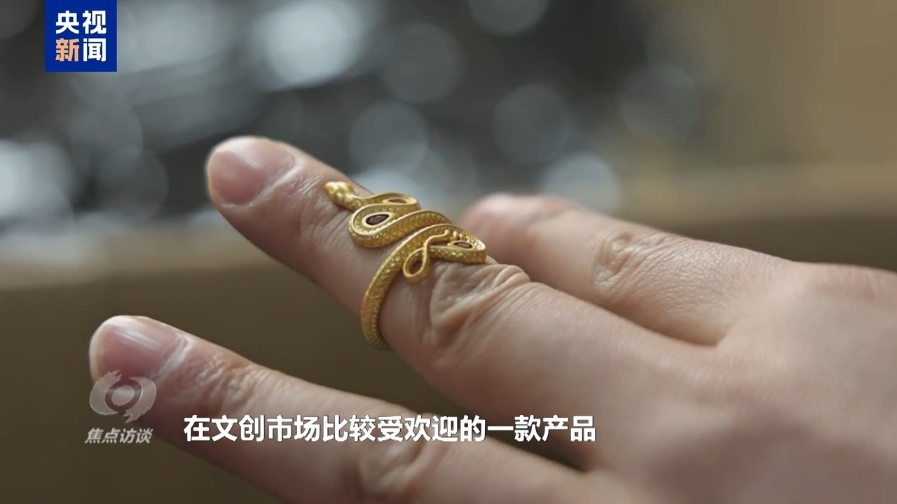 義烏某飾品公司總經(jīng)理 吳昊:這個(gè)是我們給國(guó)家博物館做的一款新年生肖款,你看看,這個(gè)是一款戒指,就適合當(dāng)下年輕人,在文創(chuàng)市場(chǎng)比較受歡迎的一款產(chǎn)品。