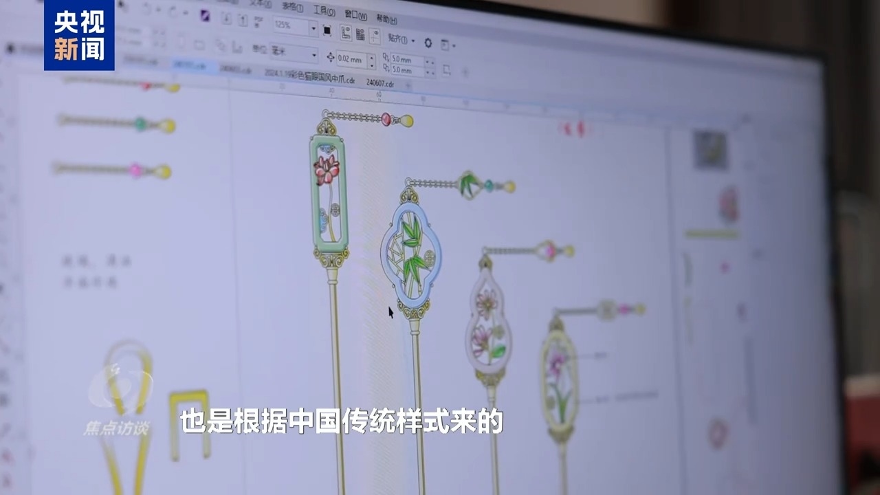義烏某飾品公司產(chǎn)品設(shè)計(jì)師 周亮:梅蘭竹菊有傳統(tǒng)的一些寓意,然后這些圖案的外形,也是根據(jù)中國(guó)傳統(tǒng)樣式來(lái)的。材料方面,我主要是想體現(xiàn)中國(guó)的那種翡翠的感覺(jué)。