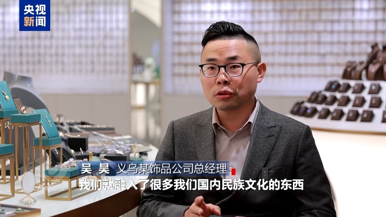 義烏某飾品公司總經(jīng)理 吳昊:在這一塊,融入了很多我們國(guó)內(nèi)民族文化的東西,重新組合去創(chuàng)造,他們都會(huì)喜歡這個(gè)東西。其實(shí)歸根結(jié)底,還是我們通過(guò)這么多年的發(fā)展,我們國(guó)家人民的日子越過(guò)越好的時(shí)候,這個(gè)民族文化的自信是從國(guó)人的骨子里面迸發(fā)出一種自信的體現(xiàn)。