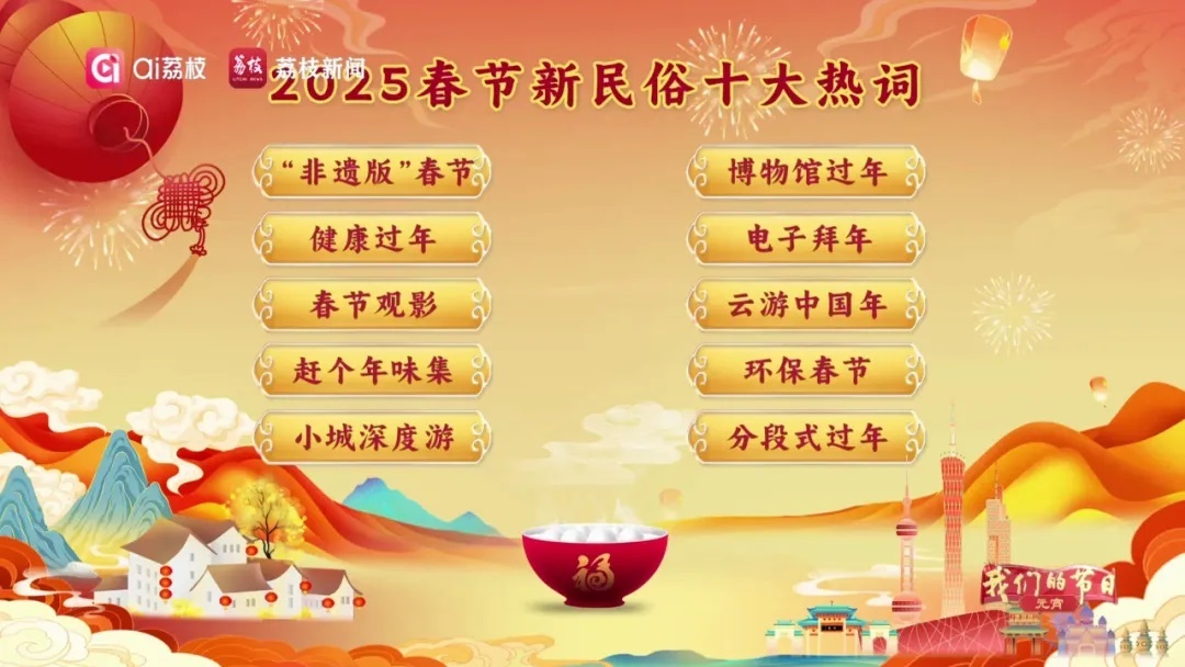 此次網(wǎng)友票選出的前十名新民俗熱詞涉及春節(jié)相關(guān)的節(jié)點(diǎn)大事,傳遞出千姿百態(tài)的過(guò)節(jié)方式,映射了時(shí)代變遷下不斷更新的過(guò)節(jié)態(tài)度,不同的春節(jié)“打開(kāi)方式”,哪個(gè)詞語(yǔ)與你最有共鳴呢?