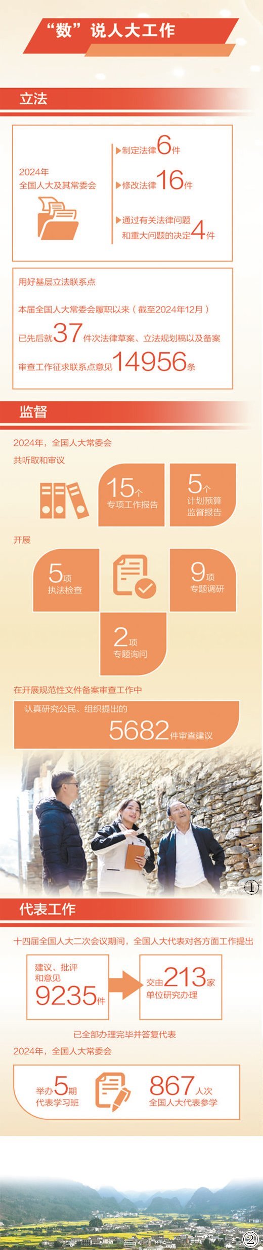 過去一年,十四屆全國人大及其常委會堅持以習近平新時代中國特色社會主義思想為指導(dǎo),緊緊圍繞黨和國家工作大局依法履職、擔當盡責,推動立法、監(jiān)督、代表、自身建設(shè)等各方面工作取得新的進展和成效,努力開創(chuàng)人大工作新局面,為以中國式現(xiàn)代化全面推進強國建設(shè)、民族復(fù)興偉業(yè)作出積極貢獻。