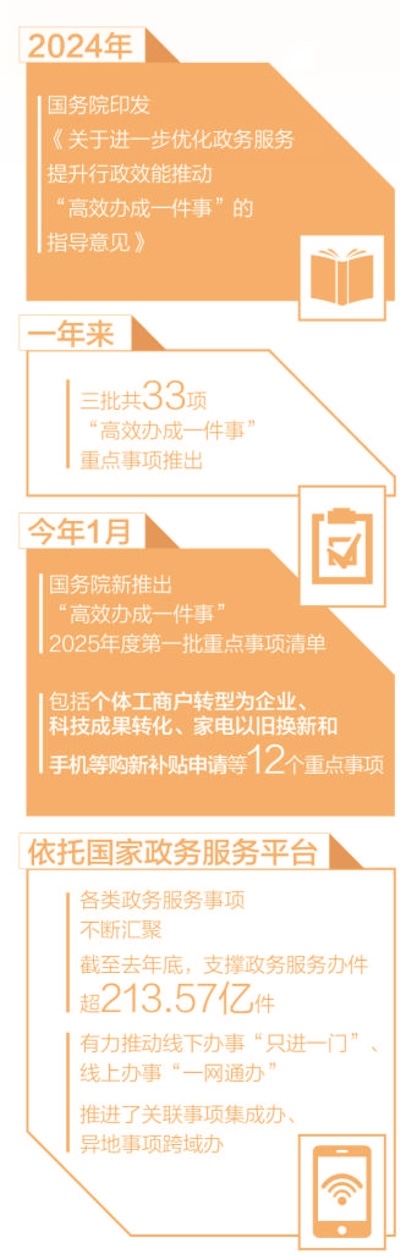 政府工作報告提出,“健全‘高效辦成一件事’重點事項清單管理和常態(tài)化推進機制,完善覆蓋全國的一體化在線政務服務平臺?!?/p>
