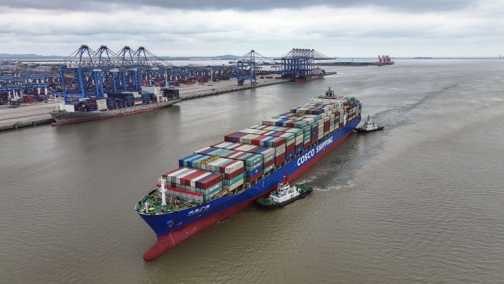 2024年5月19日,一艘海輪在廣西欽州港碼頭靠泊(無人機(jī)照片)。欽州港是北部灣港的組成部分,也是中國西南地區(qū)通往東盟的重要出???。西部陸海新通道利用鐵路、公路、水運(yùn)等多種運(yùn)輸方式,由重慶一路向南,經(jīng)廣西北部灣出海通達(dá)世界各地。截至2025年1月1日,北部灣港總航線達(dá)80條,其中外貿(mào)航線49條,基本實現(xiàn)國內(nèi)主要港口和東南亞、東北亞主要港口全覆蓋。