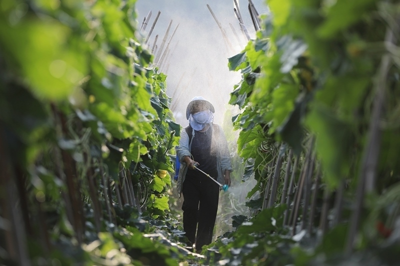 6月12日,貴州省施秉縣城關鎮(zhèn)白塘村村民在田間管護冬瓜。