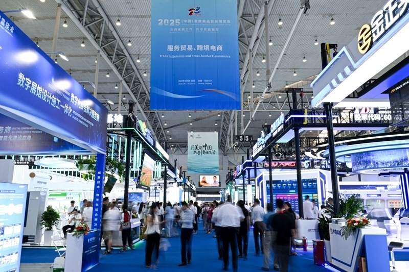 6月26日拍攝的2025(中國)亞歐商品貿(mào)易博覽會(huì)服務(wù)貿(mào)易、跨境電商展區(qū)。