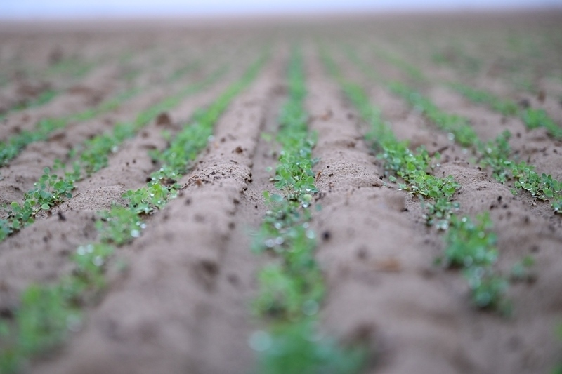 這是在新疆和田地區(qū)策勒縣4萬(wàn)畝苜蓿種植基地拍攝的苜蓿苗(9月9日攝)。