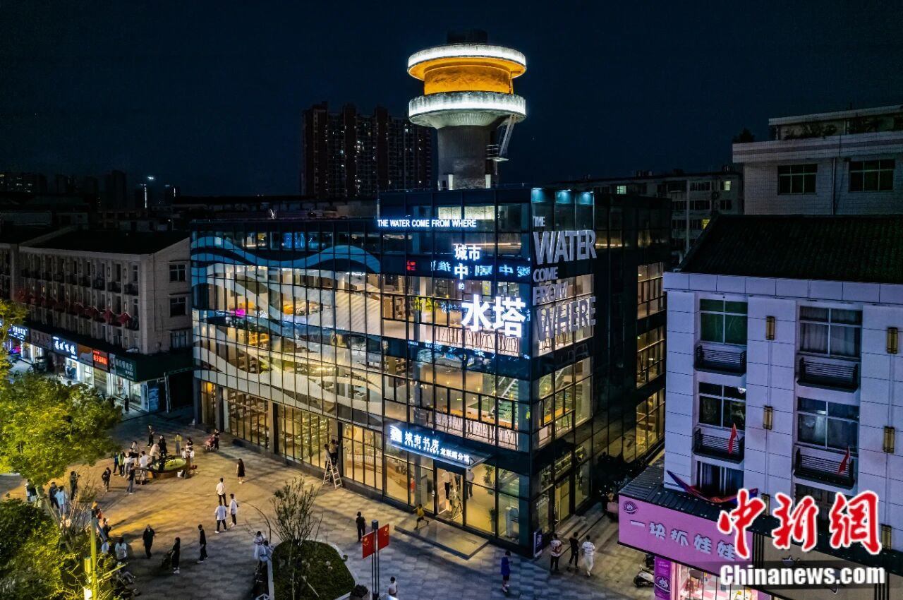 此外,在龍港的繁華街道上,一個(gè)具有市民記憶的老水塔,被改造為城市書(shū)房,成為將工業(yè)遺存與公共文化空間結(jié)合的典型案例。這個(gè)老水廠的廢棄水塔,被現(xiàn)代透明盒子建筑包裹,融合成全新的書(shū)房,既保留了工業(yè)風(fēng)貌,也成為舉辦文化沙龍、讀書(shū)會(huì)的場(chǎng)所,為城市帶來(lái)新的“墨香”。