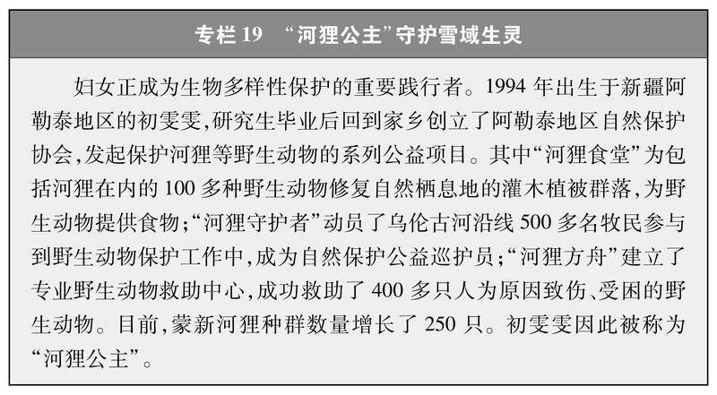推動(dòng)生態(tài)系統(tǒng)保護(hù)修復(fù)。統(tǒng)籌推進(jìn)山水林田湖草沙一體化保護(hù)和系統(tǒng)治理,著力構(gòu)建從山頂?shù)胶Q蟮谋Wo(hù)治理大格局。廣大婦女積極投身生態(tài)系統(tǒng)保護(hù)修復(fù),在19.07萬(wàn)平方公里的三江源國(guó)家公園,有1.7萬(wàn)余名生態(tài)管護(hù)員日夜堅(jiān)守,其中婦女占33.3%;海南昌江黎族自治縣的“植樹(shù)娘子軍”,30余年持續(xù)摸索反復(fù)試驗(yàn),在荒漠中種出了3萬(wàn)多畝近600萬(wàn)株海防林;陜西女子民兵治沙連50多年治理了1.4萬(wàn)畝荒漠地區(qū),使昔日寸草不生、人跡罕至的荒漠變成了“林成網(wǎng)、樹(shù)成行”的大漠綠洲;寧夏賀蘭縣“紅馬甲”巾幗志愿服務(wù)隊(duì)常年開(kāi)展護(hù)河護(hù)灘護(hù)鳥(niǎo)行動(dòng);江蘇南京市持續(xù)開(kāi)展“長(zhǎng)江大保護(hù)”巾幗行動(dòng)。在增綠護(hù)林、防沙治沙、江河保護(hù)、生物多樣性保護(hù)等各方面都展現(xiàn)著婦女的堅(jiān)韌與智慧。