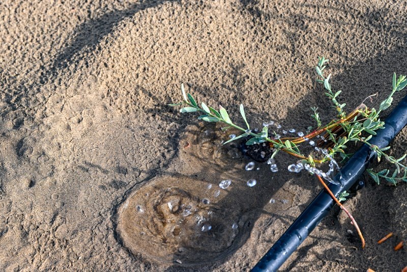 在新疆尉犁縣境內(nèi)的塔里木河南岸防沙治沙區(qū)拍攝的利用滴灌灌溉的羅布麻(9月20日攝)。