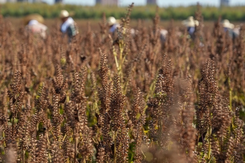 9月23日,黑龍江省佳木斯市樺南縣舉辦慶祝中國(guó)農(nóng)民豐收節(jié)活動(dòng),工作人員進(jìn)行紫蘇收獲展示。