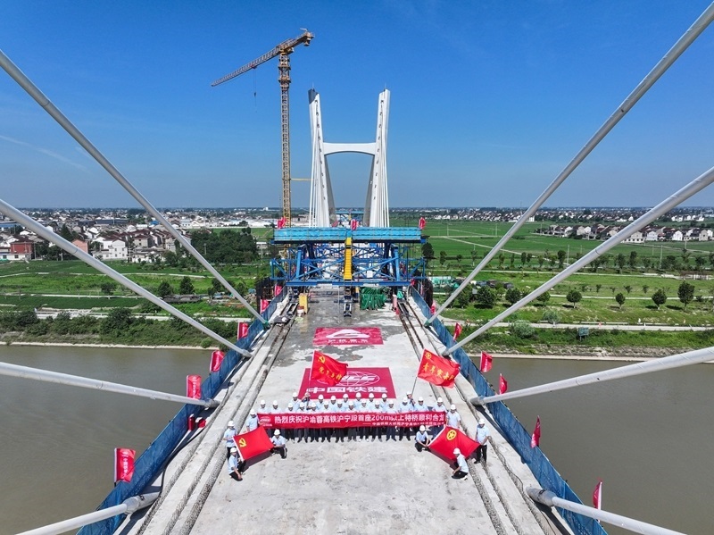 滬渝蓉高鐵通泰揚(yáng)特大橋全長(zhǎng)172.9公里,跨越江蘇南通、泰州、揚(yáng)州三市。此次合龍的跨引江河斜拉橋全長(zhǎng)522.3米,主跨220米,是滬渝蓉高鐵滬寧段首個(gè)實(shí)現(xiàn)合龍的斜拉橋。作為全線關(guān)鍵控制性節(jié)點(diǎn)工程,該橋的順利合龍為滬渝蓉高鐵通泰揚(yáng)特大橋后續(xù)鋪軌及全線貫通創(chuàng)造了有利條件。