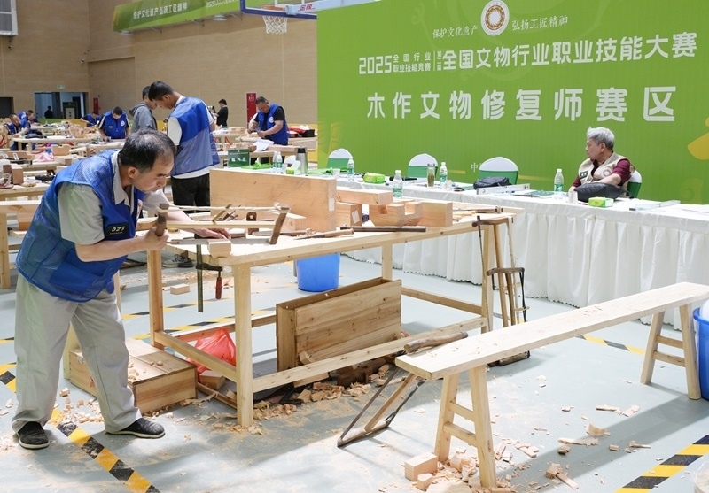 參賽選手在木作文物修復師賽區(qū)進行角逐(7月4日攝)。