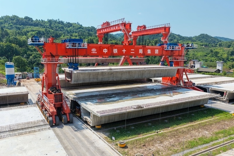 當(dāng)日,由中鐵十二局集團(tuán)承建的渝萬高鐵江林村特大橋進(jìn)入架梁施工作業(yè)階段。渝萬高鐵是我國“八縱八橫”高鐵網(wǎng)包(銀)海、京昆通道的組成部分,正線全長251公里,設(shè)計時速350公里。