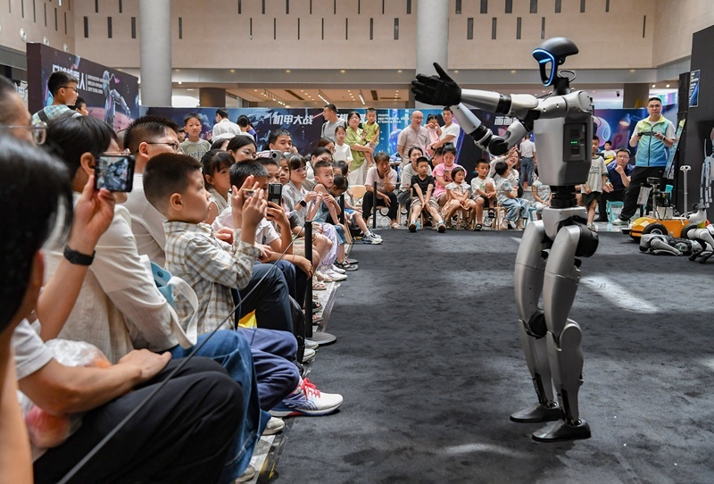 當(dāng)日,浙江省金華市金華之光文化廣場(chǎng)科技館舉辦AI智能機(jī)器人科普展,吸引了許多家長(zhǎng)帶著小朋友與人形機(jī)器人、智能機(jī)器狗、下棋機(jī)器人、足球機(jī)器人等互動(dòng),沉浸式感受人工智能技術(shù)的魅力,樂(lè)享暑期生活。
