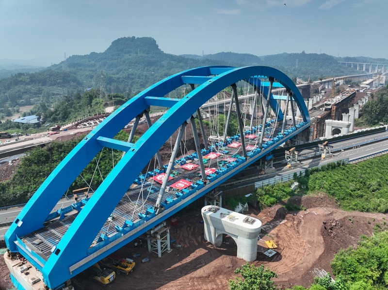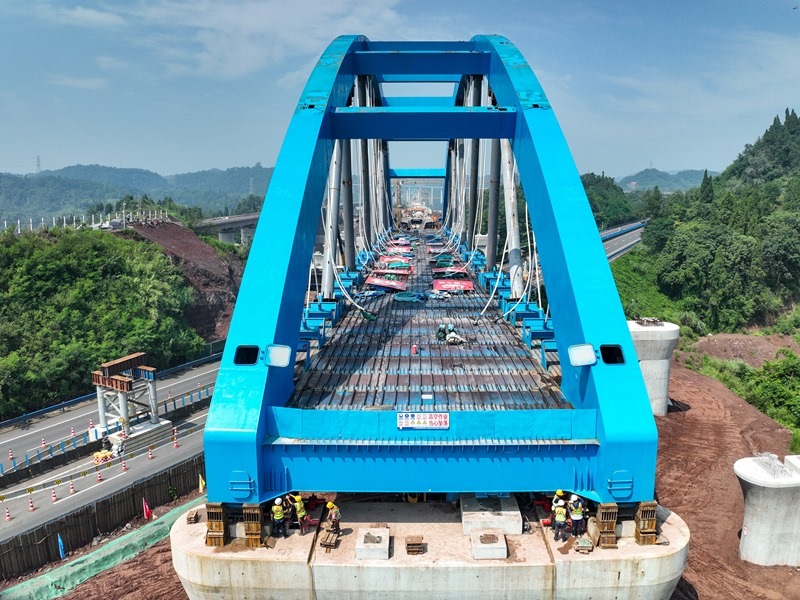 當(dāng)日,由中鐵四局承建的西渝高鐵跨營達(dá)高速公路大橋主體平穩(wěn)落在橋墩上,標(biāo)志著全國首座高鐵大跨度網(wǎng)狀吊桿系桿拱橋頂推施工完成,為全線按期通車奠定了堅實基礎(chǔ)。