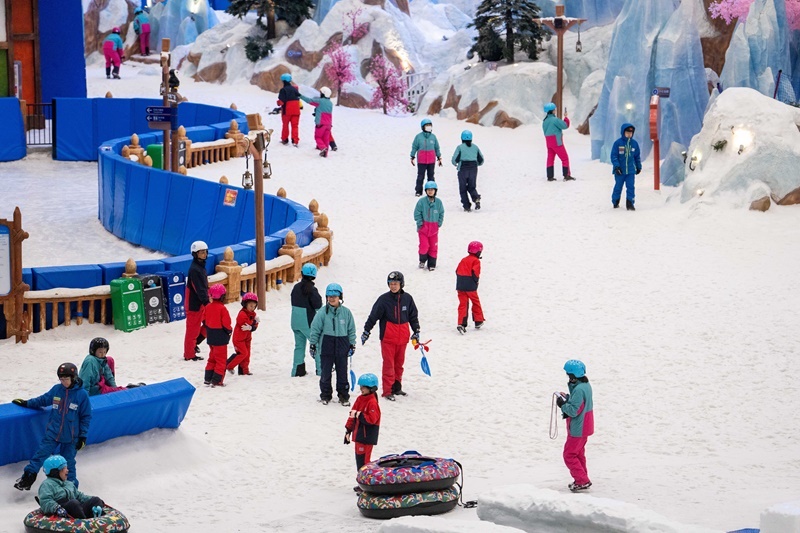 當日,湖南長沙發(fā)布當?shù)亟衲晔讉€高溫紅色預警,部分區(qū)域最高氣溫升至40℃以上。位于長沙大王山旅游度假區(qū)的湘江歡樂城歡樂雪域迎來眾多游客。據(jù)了解,這是湖南最大冰雪綜合體之一,深入地下36米打造,溫度常年保持在零下5℃左右,擁有3萬平方米的滑雪與娛雪區(qū)域,能為游客帶來“夏日玩雪”的奇妙體驗。