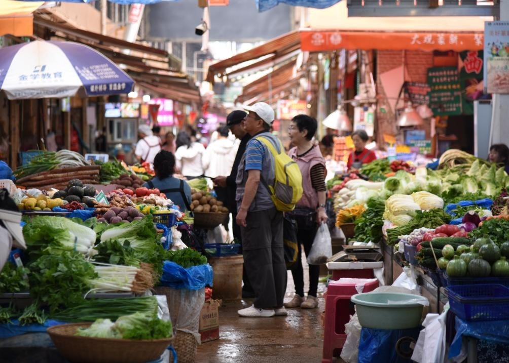 6月5日,游客在逛云南昆明大觀篆新農(nóng)貿(mào)市場(chǎng)。新華社記者王賢思 攝