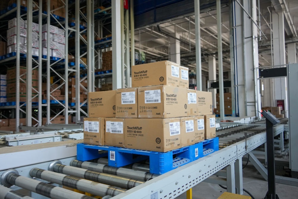 在山東臨沂的新明輝智慧倉(cāng)儲(chǔ)物流園,貨物在傳輸帶上運(yùn)輸(2025年6月11日攝)。新華社記者 徐速繪 攝
