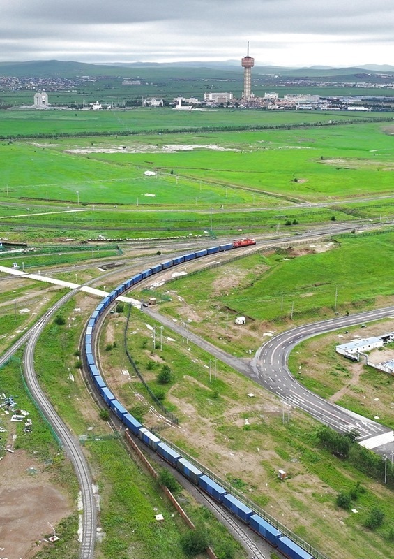 7月24日,一列滿載貨物的中歐班列從中國(guó)鐵路哈爾濱局集團(tuán)有限公司滿洲里站駛出國(guó)門(無(wú)人機(jī)照片)。