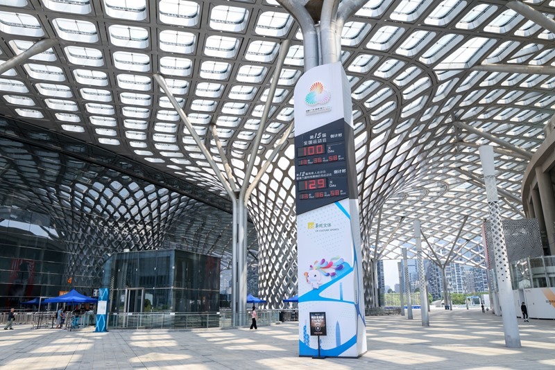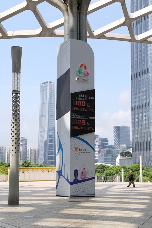 這是8月1日在深圳灣體育中心拍攝的第十五屆全國運(yùn)動(dòng)會(huì)倒計(jì)時(shí)牌。