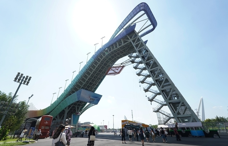 8月11日拍攝的首鋼園冷卻塔“籃球公園”。