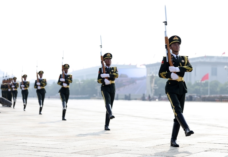 9月3日,紀(jì)念中國人民抗日戰(zhàn)爭暨世界反法西斯戰(zhàn)爭勝利80周年大會在北京隆重舉行。這是標(biāo)兵就位。