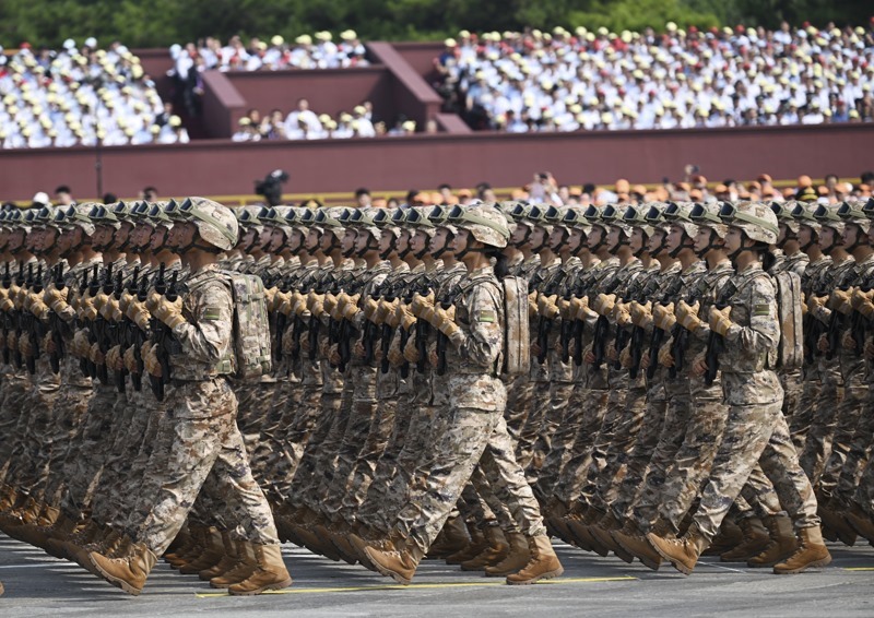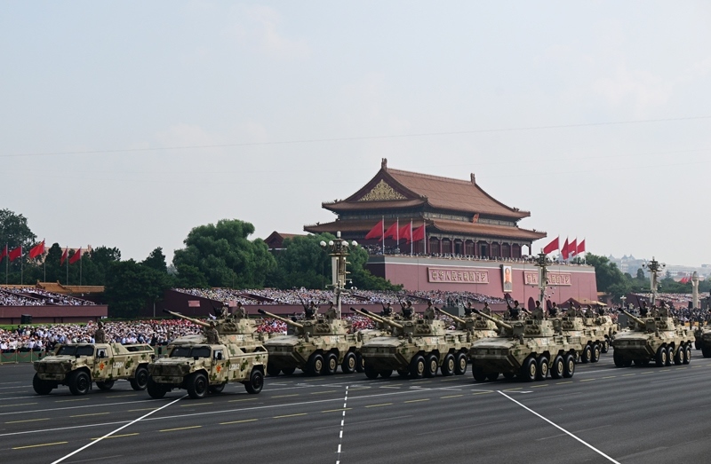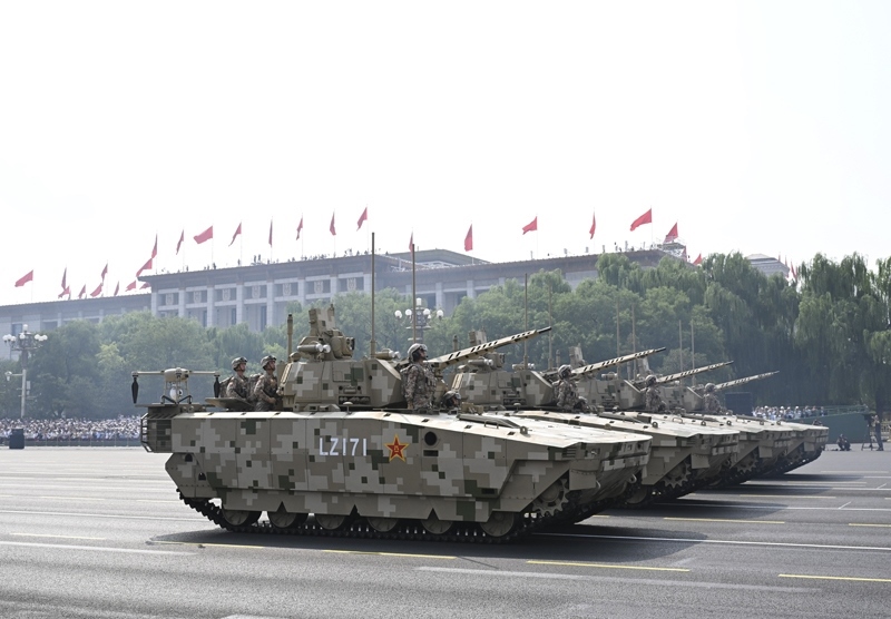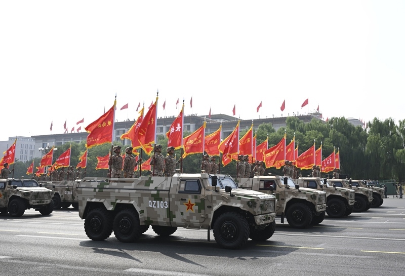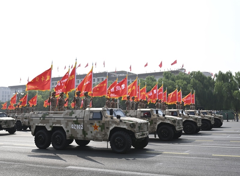 9月3日,紀(jì)念中國(guó)人民抗日戰(zhàn)爭(zhēng)暨世界反法西斯戰(zhàn)爭(zhēng)勝利80周年大會(huì)在北京隆重舉行。這是信息支援部隊(duì)方隊(duì)接受檢閱。