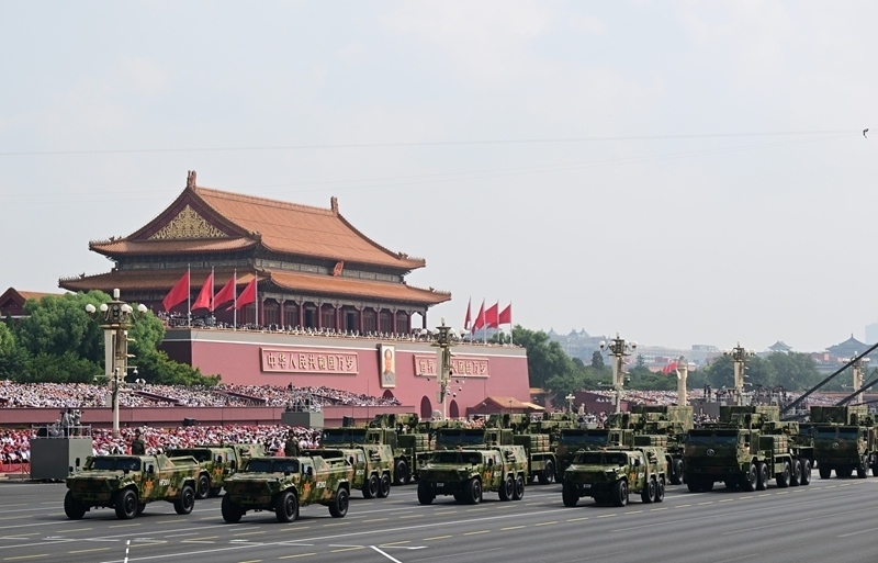 9月3日,紀念中國人民抗日戰(zhàn)爭暨世界反法西斯戰(zhàn)爭勝利80周年大會在北京隆重舉行。這是遠程火炮方隊接受檢閱。
