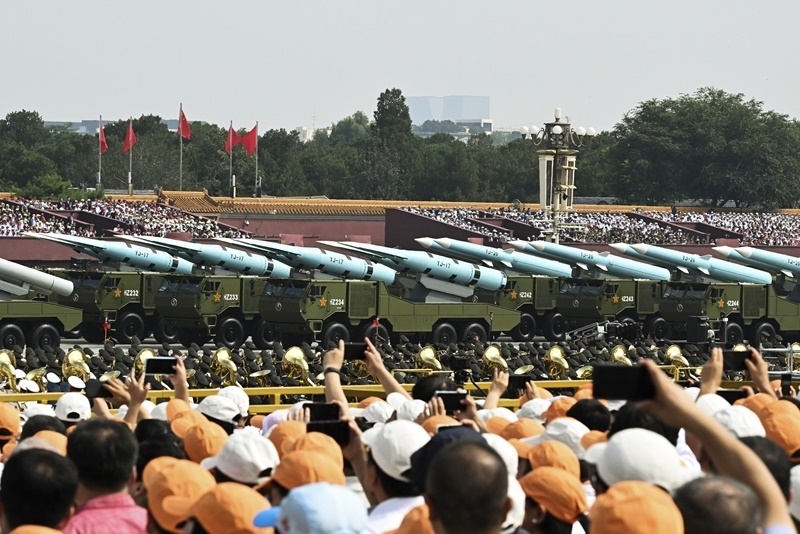 9月3日,紀念中國人民抗日戰(zhàn)爭暨世界反法西斯戰(zhàn)爭勝利80周年大會在北京隆重舉行。這是核導彈第二方隊接受檢閱。