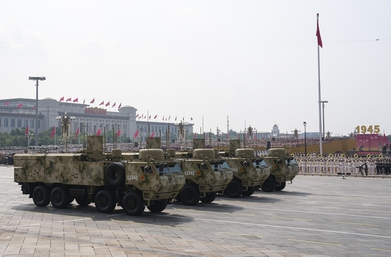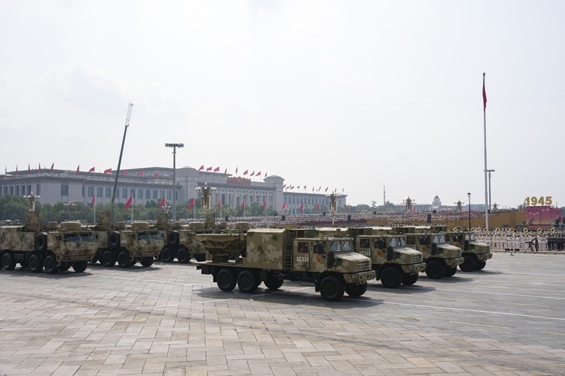 9月3日,紀念中國人民抗日戰(zhàn)爭暨世界反法西斯戰(zhàn)爭勝利80周年大會在北京隆重舉行。這是信息支援方隊接受檢閱。