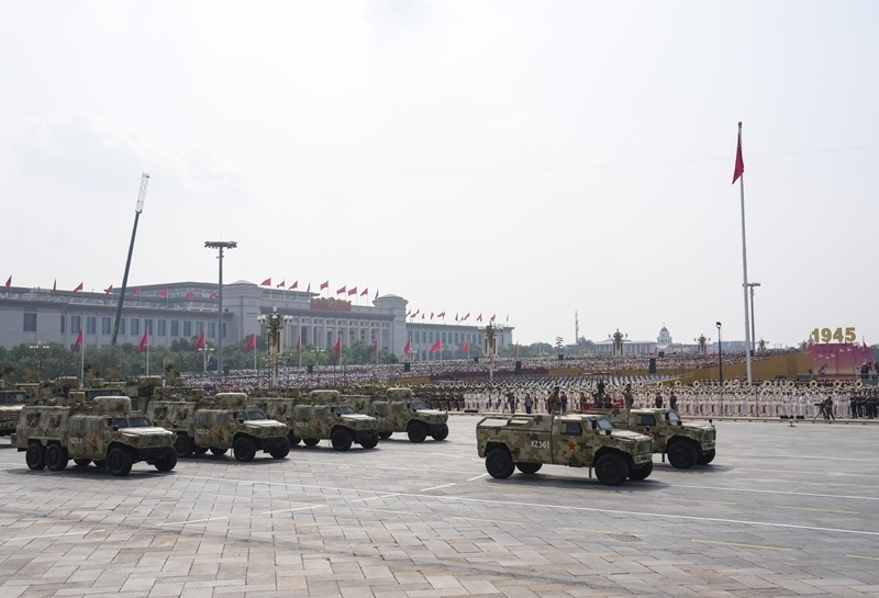 9月3日,紀念中國人民抗日戰(zhàn)爭暨世界反法西斯戰(zhàn)爭勝利80周年大會在北京隆重舉行。這是裝備保障方隊接受檢閱。