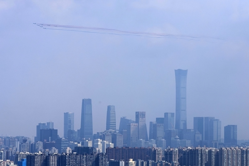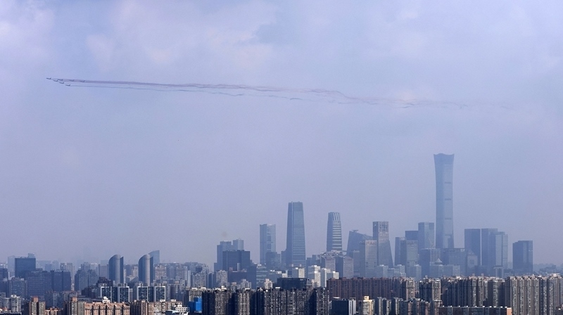 9月3日,紀念中國人民抗日戰(zhàn)爭暨世界反法西斯戰(zhàn)爭勝利80周年大會在北京隆重舉行。這是教練機梯隊接受檢閱。