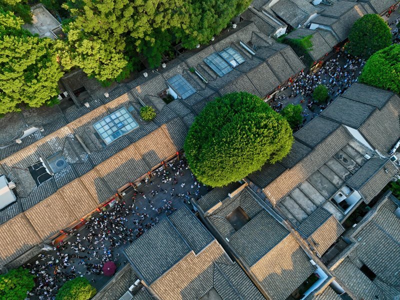 10月2日,福州三坊七巷內(nèi)游人如織(無(wú)人機(jī)照片)。
