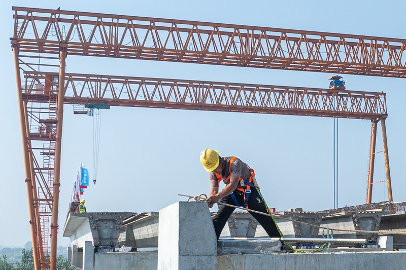 10月6日,在武漢都市圈環(huán)線高速公路孝感南段4標(biāo)項目上,中鐵二十局建設(shè)者進(jìn)行施工作業(yè)。