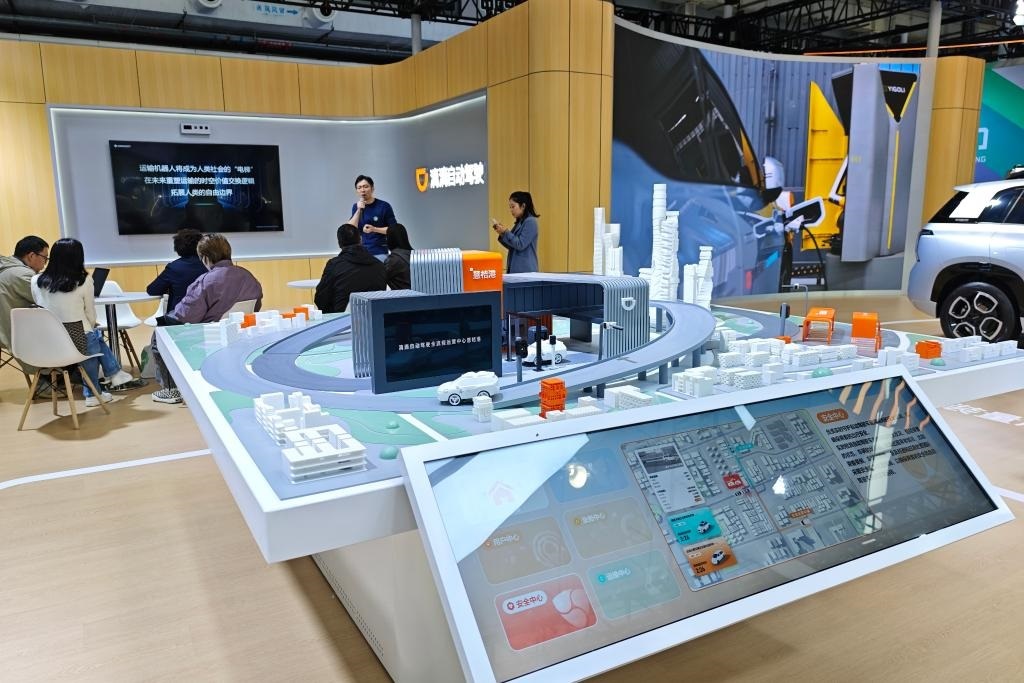 在滴滴自動(dòng)駕駛展臺(tái),智能沙盤(pán)展示全無(wú)人Robotaxi運(yùn)營(yíng)場(chǎng)景。新華社記者 唐詩(shī)凝 攝