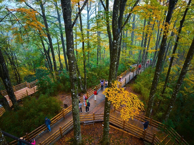 10月18日,游客在四川省光霧山風(fēng)景區(qū)的天然畫(huà)廊暢游。