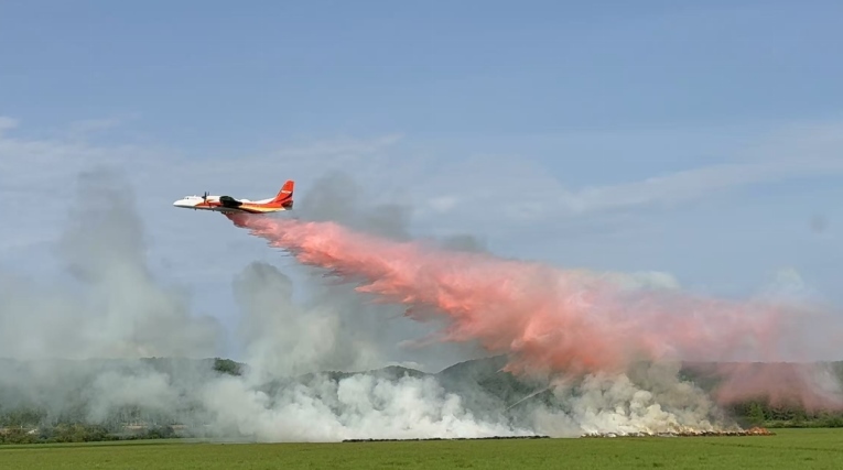 我國經(jīng)過三年自主攻關(guān)研制出的新舟60滅火飛機滅火實戰(zhàn)場景。新舟60滅火飛機最大載水量6噸,滿載作業(yè)半徑600公里,填補了森林草原滅火大飛機的空白和短板。應(yīng)急管理部供圖