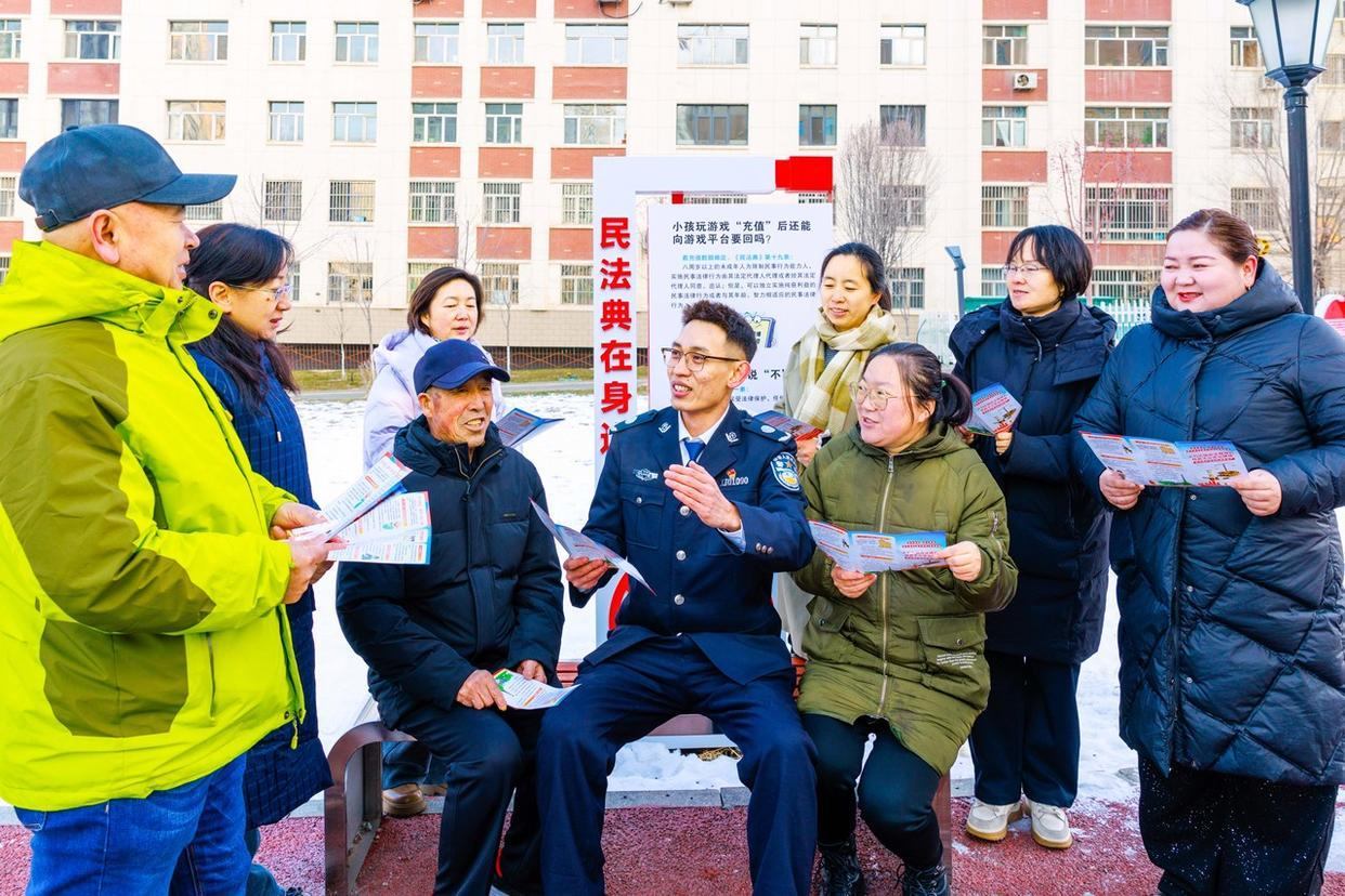 12月2日,新疆烏魯木齊市天山區(qū)幸福路街道天?;▓@社區(qū)組織黨員和志愿者上門(mén)為商戶和居民宣講憲法知識(shí)、發(fā)放憲法知識(shí)手冊(cè)、提供法律咨詢(xún)等多種形式,推動(dòng)憲法宣傳教育深入人心。(工人日?qǐng)?bào)通訊員 孫振嵩 攝)