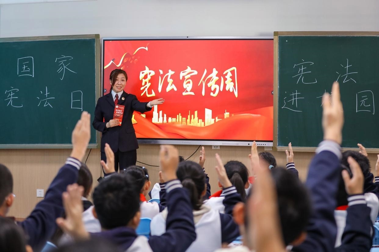 12月3日,山東省棗莊市市中區(qū)人民法院組織法官走進(jìn)校園,開(kāi)展主題宣傳活動(dòng),向?qū)W生普及憲法知識(shí)、宣傳法治觀念、弘揚(yáng)憲法精神。(工人日?qǐng)?bào)通訊員 孫中喆 攝)