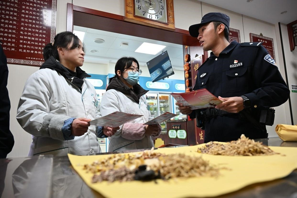 12月4日,安徽省當(dāng)涂縣公安局姑孰派出所民警走街串巷開(kāi)展法治宣傳活動(dòng)。(工人日?qǐng)?bào)通訊員 衛(wèi)學(xué)超 攝)