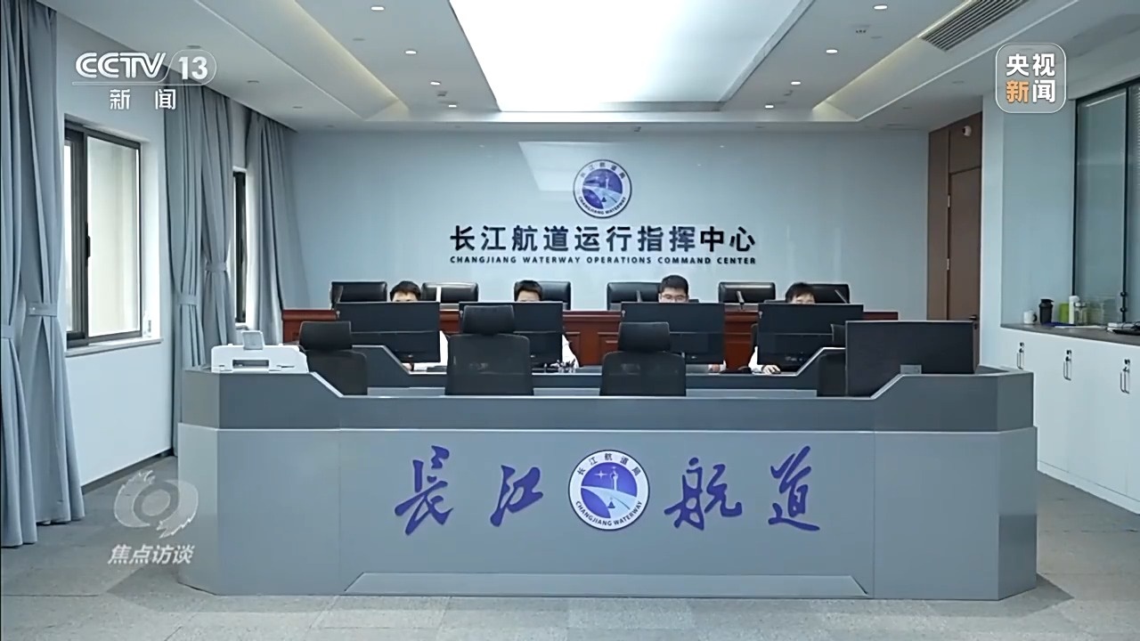 這里有智能化水上交通管控系統(tǒng),面對川流不息的九股船流,記者看到指揮現(xiàn)場忙而不亂,三個屏幕分別顯示實時的智慧海事數(shù)字信號、監(jiān)控視頻、無人機(jī)視頻,每一道指令和提醒都發(fā)布得準(zhǔn)確及時。