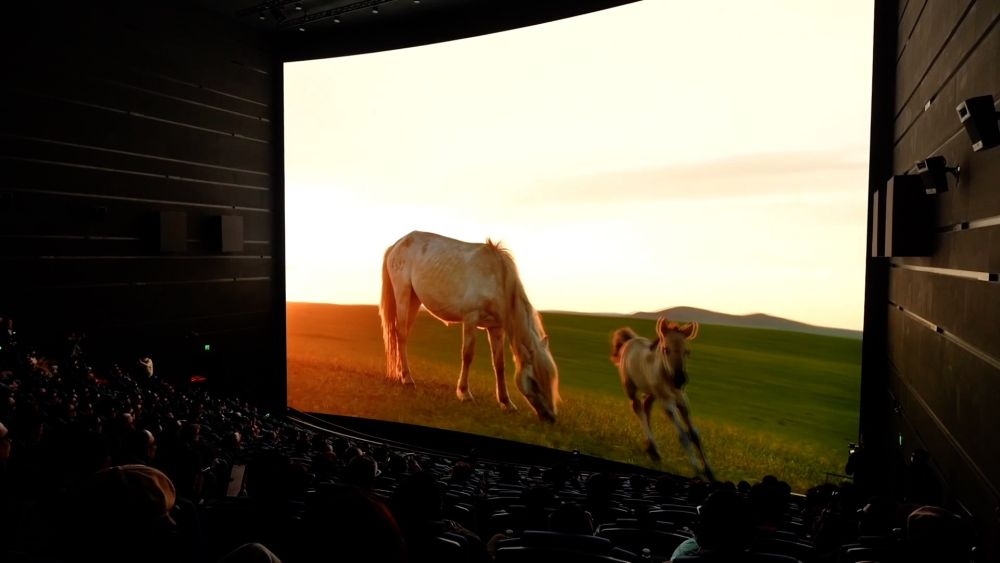 近日,全球首部生肖動物巨幕電影《馬到功成》在上??萍拣^內(nèi)巨幕影院舉行首映。該屏幕融合4K、3D、高幀率等多項技術,同時也應用了中影集團新一代的CLED透聲屏方案。