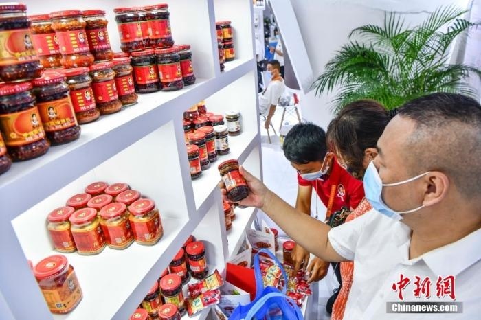 “老干媽”辣醬吸引參觀者。 中新社記者 駱云飛 攝